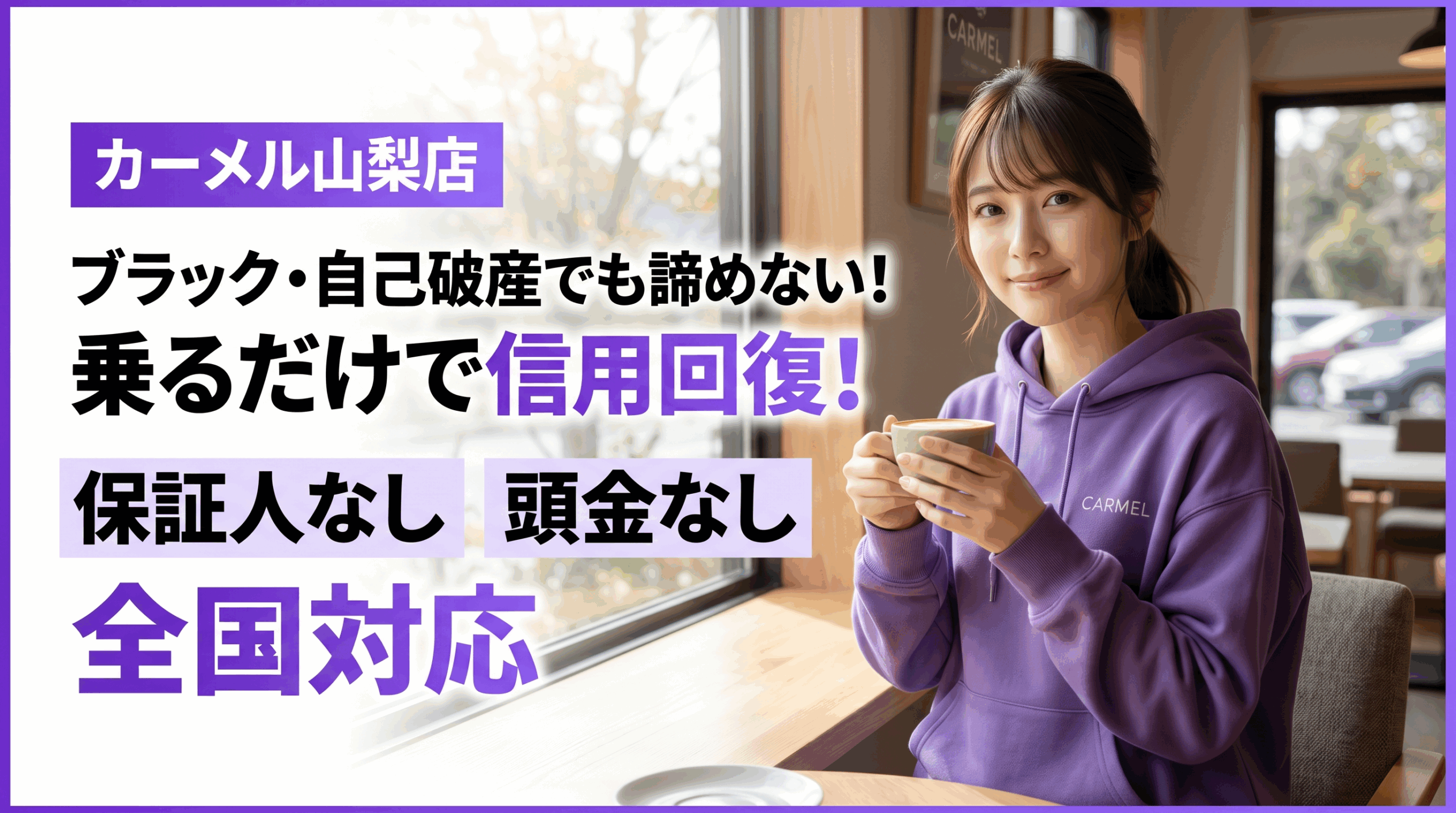 カーメル山梨店では、車を購入する際、保証人不要で、頭金も0円からの購入が可能です。他の販売店で頭金が必要と言われたり、保証人を立てることが難しいと感じている方でも、ご安心ください。